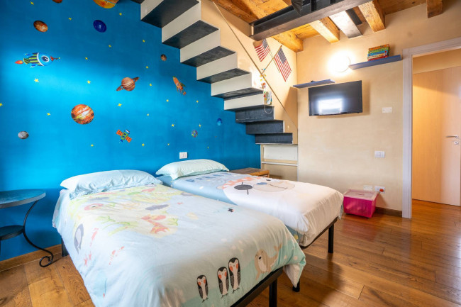 Im zweiten und letzten Stockwerk befindet sich ein geräumiger Dachboden, der vielfältige Nutzungsmöglichkeiten bietet: Er kann in ein Arbeitszimmer für diejenigen umgewandelt werden, die von zu Hause aus arbeiten, oder in einen Aufenthaltsraum, ideal für Freizeit und Entspannung.