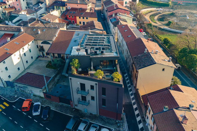 Im Herzen von Pescantina, in zentraler Lage mit besonders günstiger Anbindung an alle Annehmlichkeiten, bieten wir ein geräumiges und elegantes Penthouse mit Panoramaterrasse, die einen angenehmen, weiten Blick bietet und ideale Räumlichkeiten für das Leben im Freien zu jeder Jahreszeit bietet.