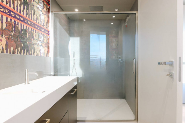 Das Penthouse erstreckt sich vollständig über eine Ebene im dritten und obersten Stockwerk. Vom Eingangsbereich gelangt man in den hellen Wohnbereich mit Wohnzimmer und Küche, der über zwei große Fenstertüren mit Zugang zur weitläufigen Panoramaterrasse verfügt. Weiter führt ein Flur zum Hauptbadezimmer, drei Schlafzimmern – darunter ein geräumiges Hauptschlafzimmer mit eigenem Bad – sowie einem praktischen Abstellraum und einem Servicebalkon.