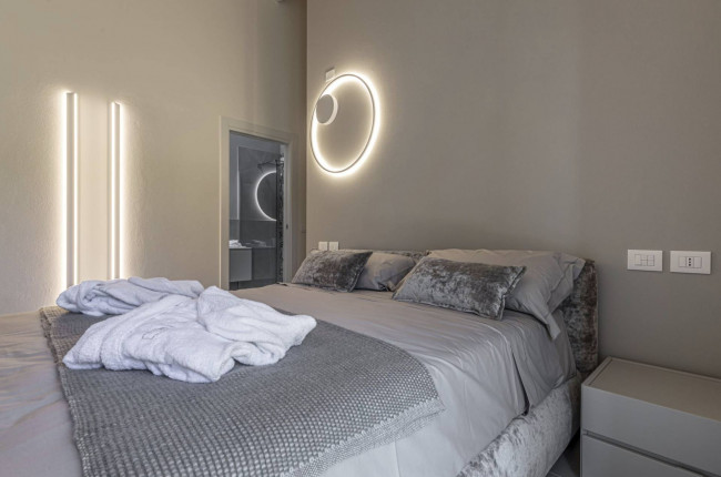 The interiors welcome you with a large open-space living area, dominated by large windows overlooking the garden, giving you a feeling of continuity with the outside.