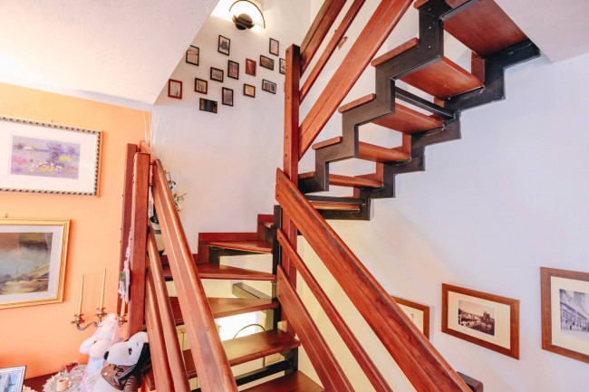 The house is on several levels composed as follows: on the ground floor we find a large bright living room, a separate eat-in kitchen overlooking the large porch ideal for enjoying moments of relaxation outdoors and a service bathroom. Going up to the first floor you enter the sleeping area with two double bedrooms, a third space currently used as a study and a second bathroom with window.