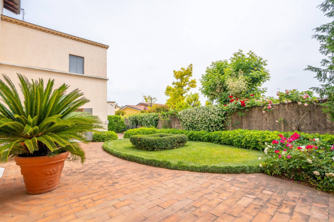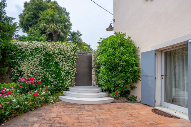 In the heart of the picturesque hamlet of Sandrà, in Castelnuovo del Garda, in a privileged position convenient to the historic centre and all services, stands an independent villa of rare elegance, spread over three levels above ground as well as a basement, with a private courtyard that enhances its privacy and prestige.