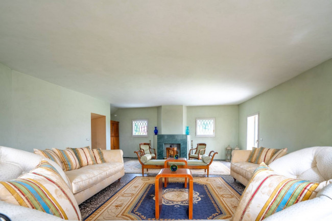 A dramatic marble spiral staircase leads to the first floor, which features a hallway, a guest bathroom, and two bedrooms, including a master bedroom with an ensuite bathroom. A spacious secondary living room, flooded with light thanks to numerous windows, offers direct access to a panoramic terrace, perfect for relaxing and enjoying the tranquility of the location.