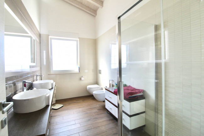 In Valeggio sul Mincio, in an elegant residential area convenient to all amenities, we offer a detached villa on two levels plus a basement.