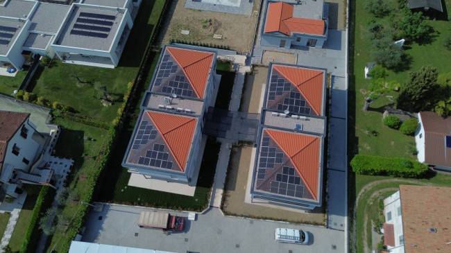 L'unità immobiliare sarà dotata di riscaldamento a pavimento autonomo con pompa di calore (3 Kw), impianto fotovoltaico indipendente, aria condizionata e tapparelle elettriche.