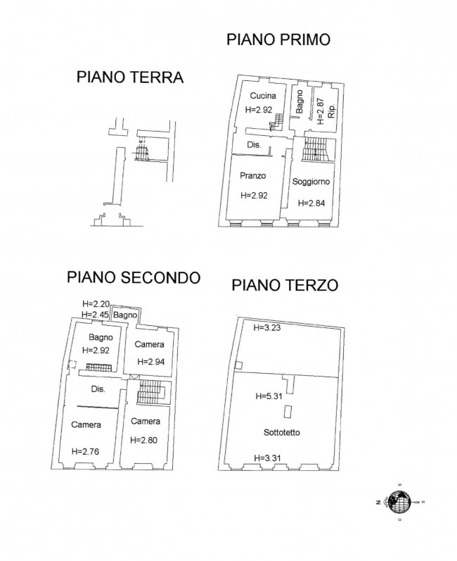 - abitazione disposta su piano primo, secondo e terzo così composta: ingresso al piano terra tramite vano scala esclusivo; soggiorno, sala da pranzo, cucina, disimpegni, bagno e ripostiglio al primo piano; disimpegno, tre camere da letto, di cui una con bagno privato, ed ulteriore bagno al secondo piano; sottotetto al terzo piano.