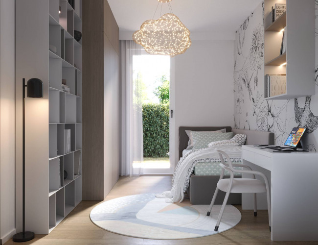 Questa soluzione abitativa si distingue per la sua cura nei dettagli e la funzionalità degli spazi, rispondendo perfettamente alle esigenze di chi cerca una casa moderna, confortevole e immersa nel verde.