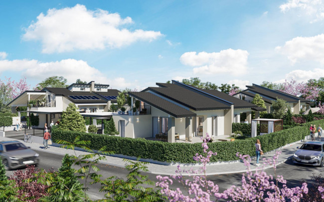 A Peschiera del Garda, località Broglie, immersa in uno scenario tra i vigneti, proponiamo nuova bifamiliare su due livelli con giardino.