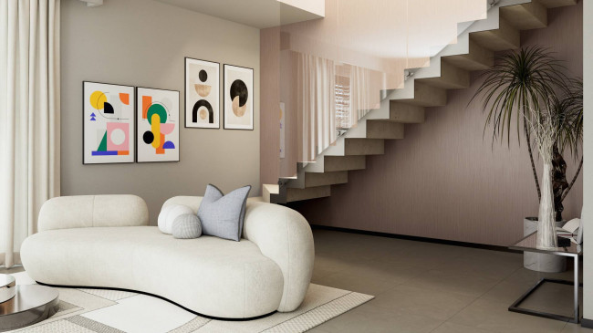 La proprietà si sviluppa su due livelli fuori terra, accuratamente suddivisi per ottimizzare ogni spazio abitativo e garantire il massimo comfort. Al piano terra troviamo un luminoso ingresso, un ampio soggiorno con cucina a vista, ideale per momenti conviviali, e un bagno di servizio. Al primo piano si accede alla zona notte, composta da una elegante camera matrimoniale con bagno privato e guardaroba esclusivo, due ulteriori camere spaziose, un bagno finestrato e un meraviglioso terrazzo, perfetto per rilassarsi e godere della vista.