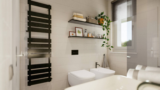 Questa villa è dotata di tecnologie di ultima generazione per un'alta efficienza energetica e un comfort abitativo superiore: pannelli fotovoltaici per la produzione di energia sostenibile, una moderna pompa di calore e un sistema di riscaldamento a pavimento per il massimo benessere.