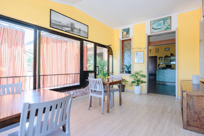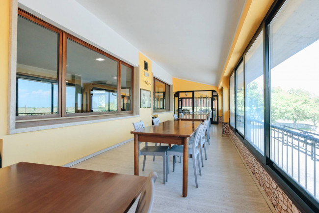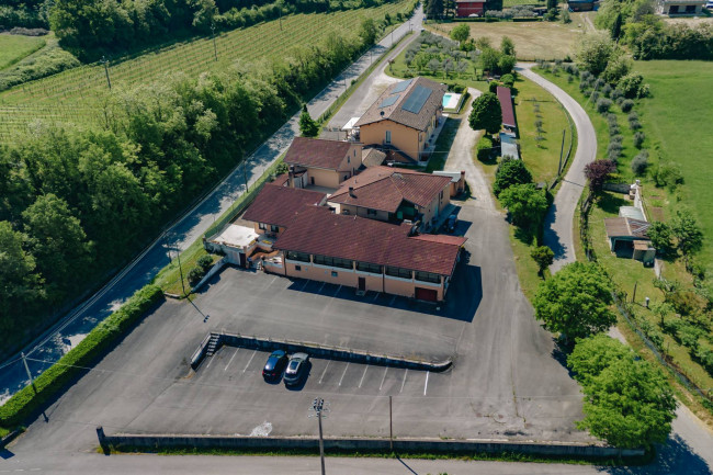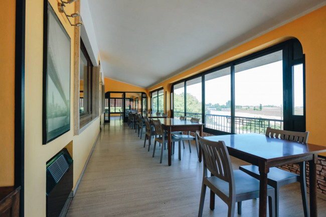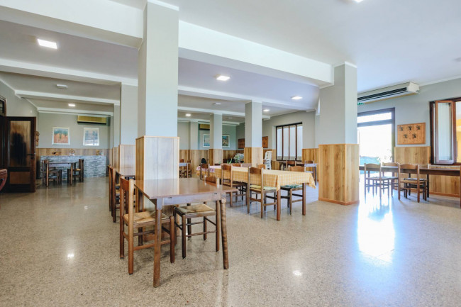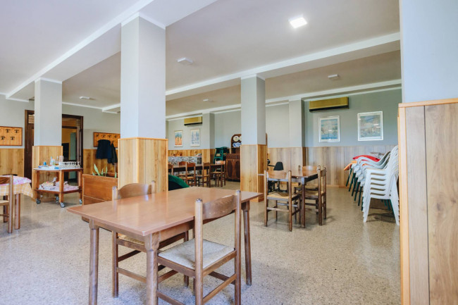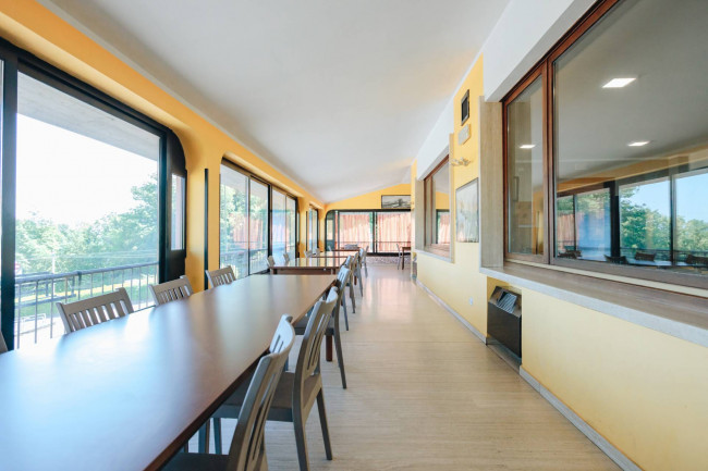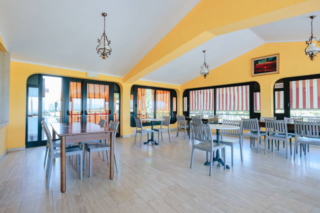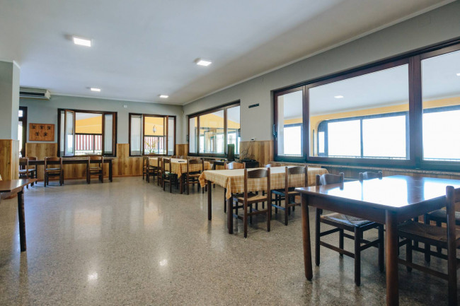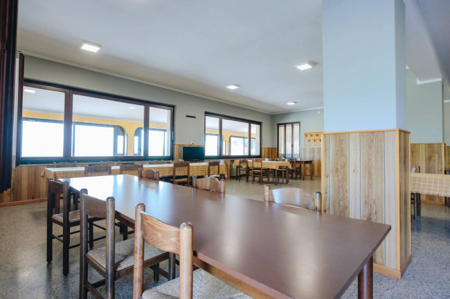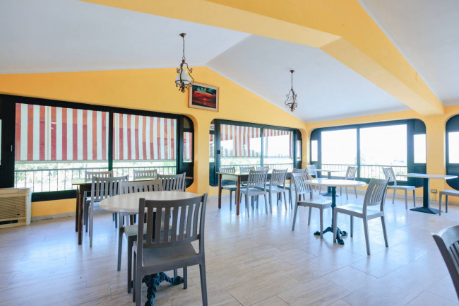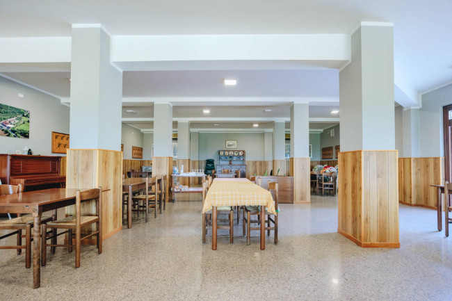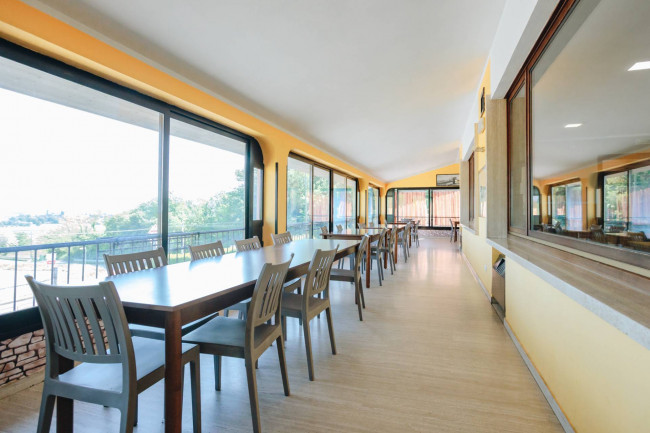 Al piano terra si trova il ristorante, caratterizzato da ambienti spaziosi e curati: un'ampia sala open space con zona bar, una grande sala da pranzo, un forno a legna per pizzeria, una cucina professionale completamente attrezzata, una saletta più riservata ideale per cene intime, servizi igienici per i clienti, locali deposito e stoccaggio merce, terrazze e verande esterne perfette per la bella stagione, tutte con vista sulle colline. L'intero ambiente è climatizzato e pensato per offrire comfort e funzionalità.