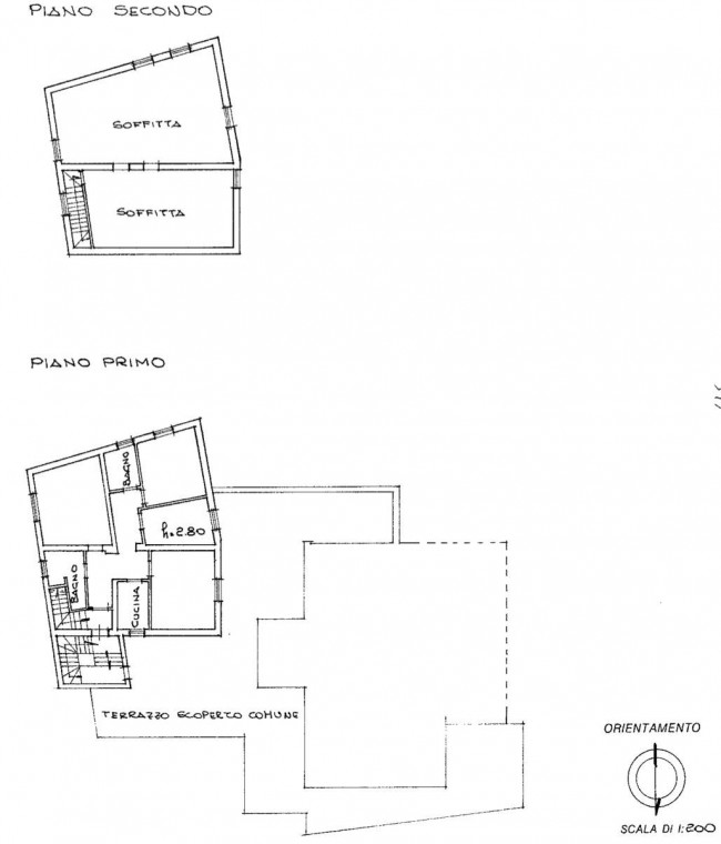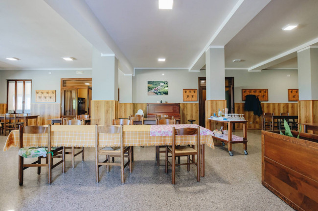 Il piano primo ospita due grandi appartamenti con ingresso interno, ideali come abitazione per gestori o personale. Il primo è composto da cucina, quattro camere da letto e due bagni; il secondo da cucina, tre camere da letto e due bagni. Al piano secondo completano la proprietà due locali soffitta, perfetti come deposito o da riorganizzare secondo necessità.