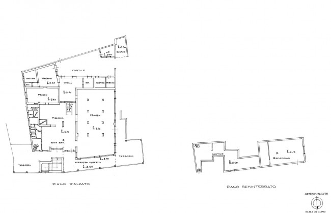 Al piano seminterrato troviamo una cantina, una taverna e un magazzino, oltre a un cortile esterno posto sul retro della cucina e un rustico utilizzato come deposito attrezzi.
