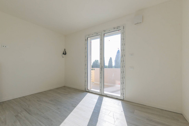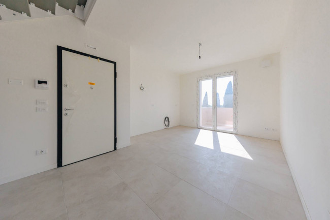 L'abitazione si trova all'interno di un nuovo e moderno complesso residenziale denominato "Residence Gardenia" e si sviluppa su due livelli così composti: l'ingresso si apre su una luminosa zona giorno con angolo cottura, dalla quale si accede al primo terrazzo coperto con splendida vista sul lago di Garda. Sempre al primo piano si trovano due camere da letto e un bagno finestrato con finiture contemporanee.