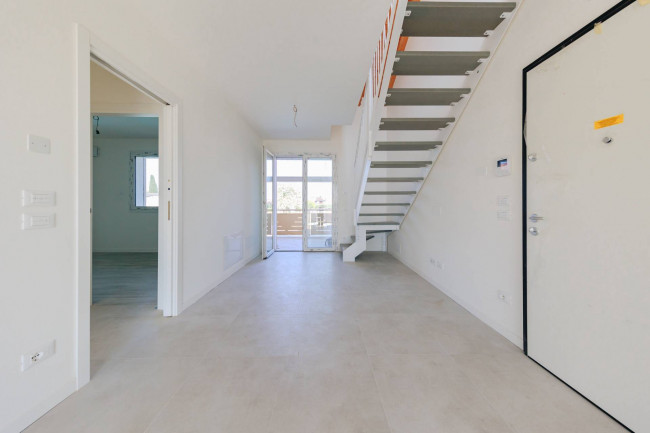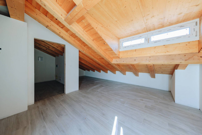Una scala interna conduce al secondo ed ultimo livello, una mansarda completamente rifinita, versatile e spaziosa, impreziosita da un secondo terrazzo panoramico affacciato sul lago, perfetto per momenti di relax e convivialità.
