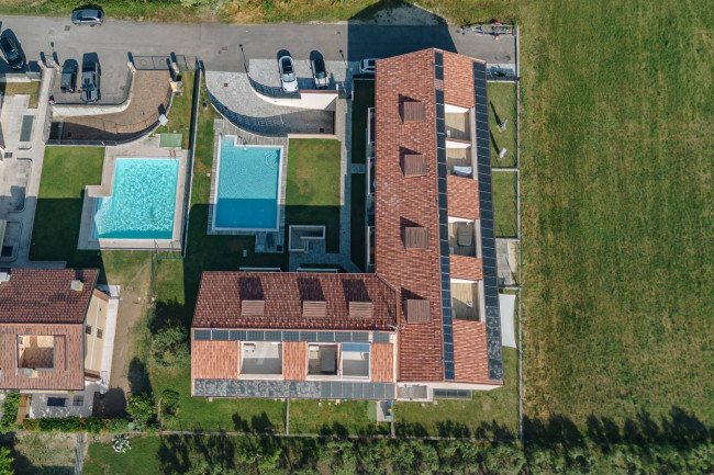 Castelnuovo del Garda, a soli 700 metri dalle rive del lago, in posizione strategica e riservata, proponiamo in vendita un raffinato trilocale su due livelli, inserito in un moderno complesso residenziale di nuova costruzione con piscina.
