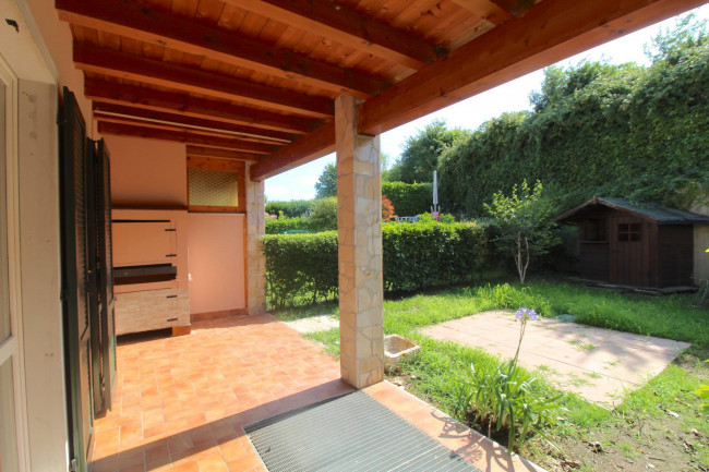 L'immobile, sviluppato su un unico livello, dispone di un ingresso indipendente attraverso un giardino frontale, ideale come zona d'accoglienza verde e riservata. La zona giorno, luminosa e accogliente, affaccia direttamente sul giardino posteriore, uno spazio riservato e vivibile, ideale per pranzi all'aperto, relax o momenti in compagnia.