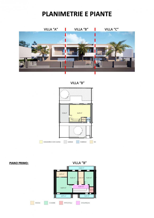 Il progetto residenziale prevede la costruzione di tre eleganti ville indipendenti, edificate secondo i più elevati standard energetici e costruttivi, in classe A4. Ogni unità è pensata per offrire comfort, funzionalità e privacy, articolandosi su due livelli ben distribuiti.