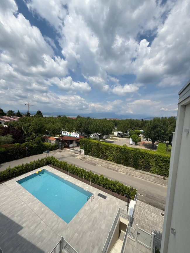 L'immobile si trova all'interno di un recente complesso residenziale con piscina "Cuore del Garda" a 200 metri dal lago, al terzo piano, ed è così composto: ingresso, zona giorno open space, due camere da letto, doppi servizi e balconi.