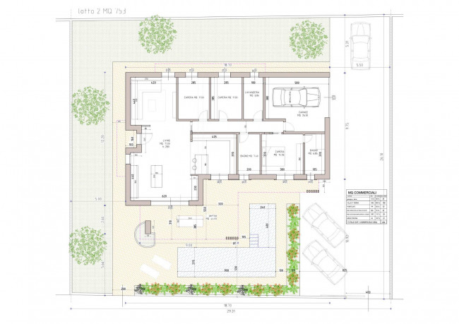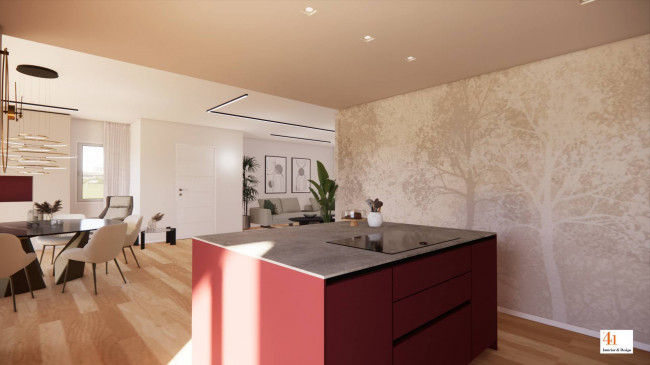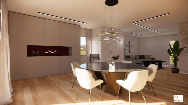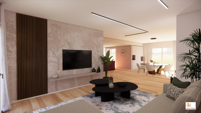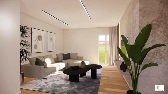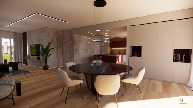La proprietà sorgerà su un lotto di circa 750 mq e si svilupperà su un unico livello, con spazi ampi e luminosi che dialogano armoniosamente con l'esterno. Il cuore della casa è l'ampio living di 71 mq con cucina a vista, che si apre direttamente sul portico, creando continuità tra interno ed esterno, perfetto per momenti di relax e convivialità.
