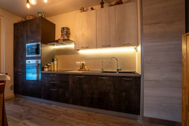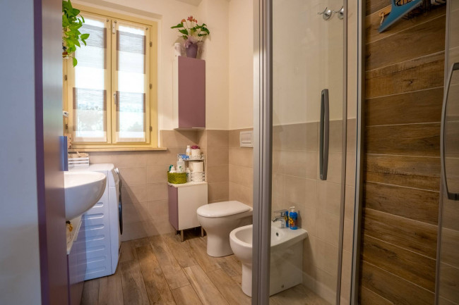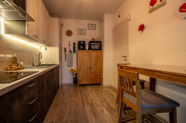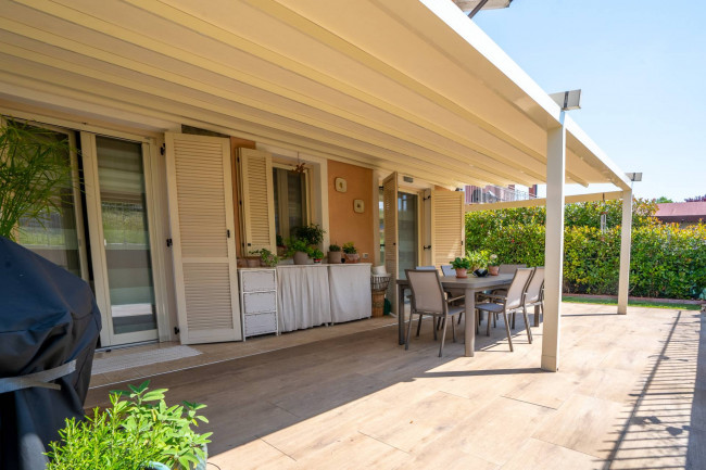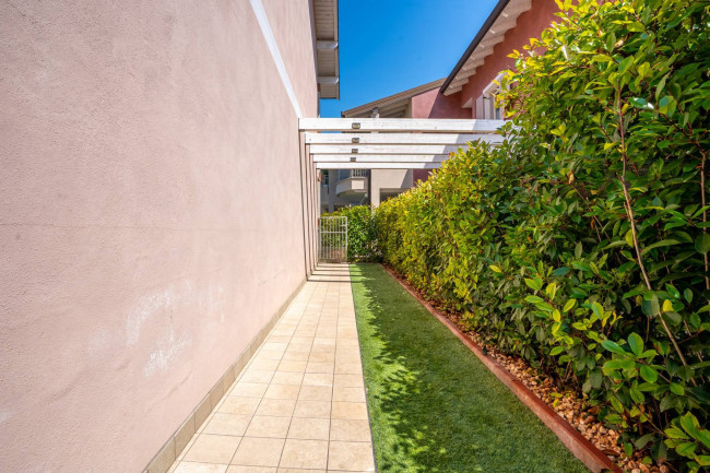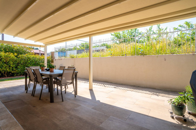 L'appartamento si distingue per le sue finiture curate e per una serie di dotazioni che ne aumentano comfort e funzionalità. Tra queste spiccano la pergola Gibus con tetto apribile e illuminazione a led, il boiler elettrico da 80 litri a basso consumo, protetto da un armadio in ferro e legno realizzato su misura. L'immobile è inoltre dotato di riscaldamento centralizzato a pavimento, aria condizionata, impianto di irrigazione automatico e indipendente, piantumazioni su tutti i lati, prato sintetico e un plateatico retrostante rifinito con piastre galleggianti in gres porcellanato lavabile.