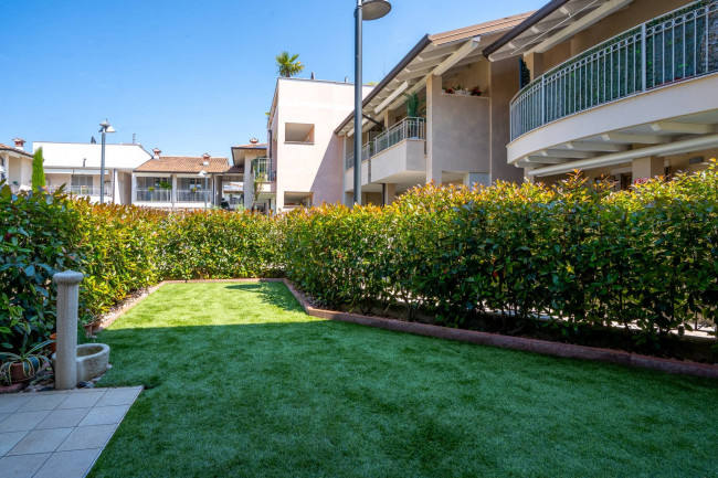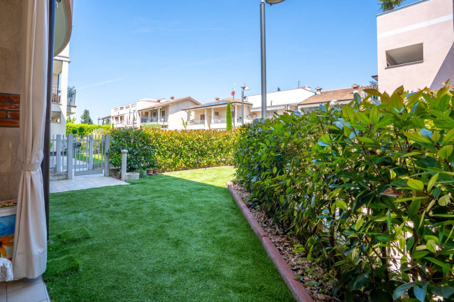 Castelnuovo del Garda, in posizione strategica al confine con Peschiera del Garda e inserito in una zona panoramica particolarmente comoda al lago e a tutti i principali servizi, proponiamo un elegante trilocale al piano terra, libero su tre lati con ampio giardino esclusivo.